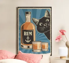Illustrazione di metà secolo di una bottiglia di Rum, con tanto di balena :)