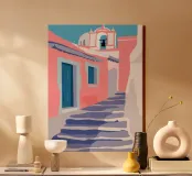 Scala per Santorini tela con Cornice a cassetta