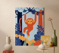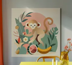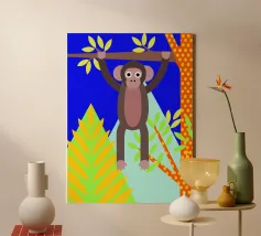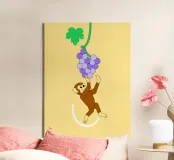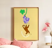 "La scimmia e l'uva" è un adattamento illustrato del racconto classico con un tocco artistico moderno.
