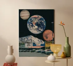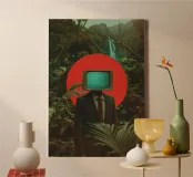 Un collage digitale surreale che mescola natura, tecnologia e distacco esistenziale. Una figura senza volto con un monitor CRT retrò al posto della testa, in piedi in una giungla tropicale. Sullo schermo si legge "YOU'RE OFFLINE", una tranquilla ribellione contro l'iperconnettività. Con forti contrasti, colori vivaci e un sorprendente sole rosso dietro il soggetto, quest'opera cattura la sensazione di disconnessione in un mondo iperconnesso. Perfetto per gli amanti del surrealismo botanico, dell'arte moderna del collage e dell'evasione digitale.
