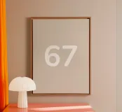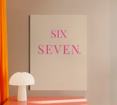 Canvas decorativo stile minimalista con cifra '67' su sfondo beige, ideale per arredare soggiorno, ufficio o camera da letto. Realizzato con materiali di alta qualità certificati UE, garantisce durata e resa cromatica impeccabile. Design semplice e moderno perfetto per un ambiente elegante e contemporaneo.