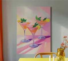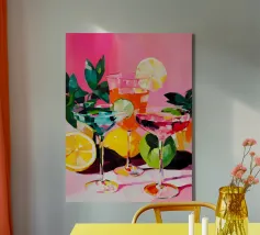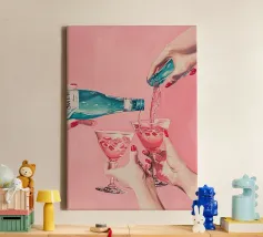 L'immagine mostra una scena celebrativa in cui diverse mani reggono bicchieri pieni di cocktail rosa per brindare insieme. Lo sfondo e l'illuminazione sono dominati dalle tonalità del rosa, creando un'estetica coesa e vibrante. Ogni bicchiere contiene un cocktail guarnito con una fetta di agrumi, sottolineando l'atmosfera festosa e vibrante. L'immagine cattura l'essenza di un incontro felice, forse una serata tra ragazze o una celebrazione simile.