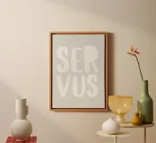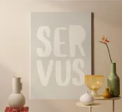 Friendly bold letters in soft white, a warm hello with alpine charm and a hint of effortless coolness.