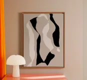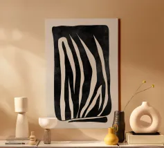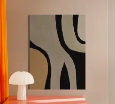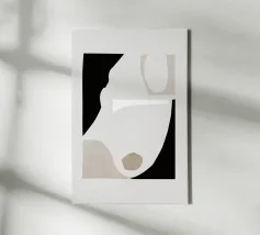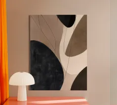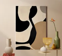 Forme organiche in nero, marrone, beige e colori neutri in un'opera d'arte contemporanea e minimalista adatta a interni moderni, scandinavi e in stile japandi.