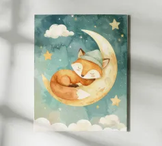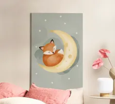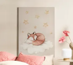 Simpatica volpe addormentata sull'arcobaleno con elementi celestiali tela