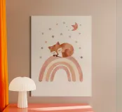 Simpatica volpe addormentata sull'arcobaleno con elementi celestiali tela