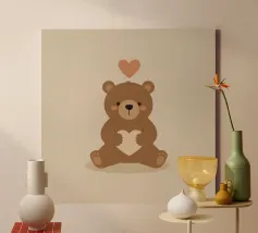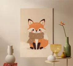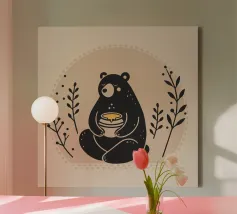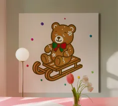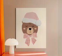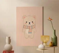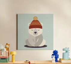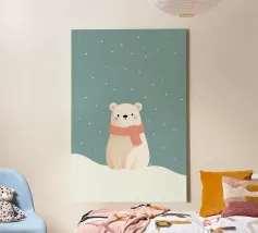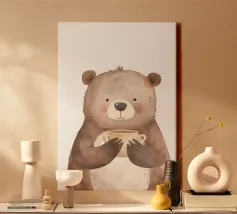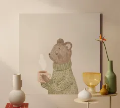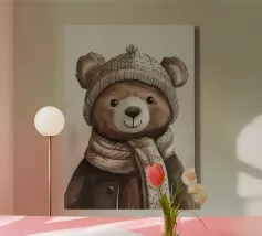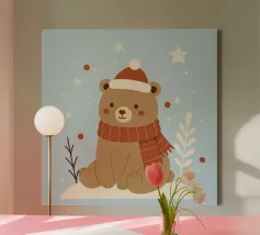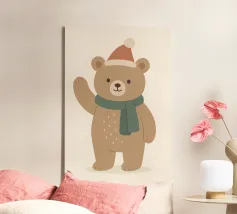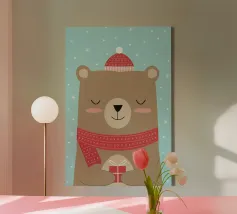 Simpatico orso in inverno con sciarpa e tazza calda tela