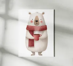 Simpatico orso in inverno con sciarpa e tazza calda - perfetto per un look accogliente, per l'inverno, per il Natale e per tutti coloro che amano i simpatici motivi animali.