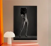 Uno scatto di nudo artistico di una giovane donna che si tira il vestito sopra la testa