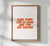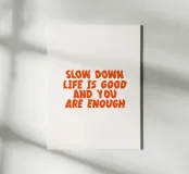 Scopri l’arte unica di “Slow Down” di KRUTH DESIGN! Questa canvas di alta qualità porta un messaggio positivo e offre uno stile fresco e moderno, perfetta per ogni ambiente. Ideale per chi cerca ispirazione per la propria decorazione domestica o per un regalo originale. Aggiungi un tocco di colore e motivazione al tuo spazio con questa opera d’arte, ideale per la camera da letto, lo studio o il soggiorno. La scritta "Slow Down" ti ricorda di prendere tempo per te stesso, rendendola un pezzo d’arte che fa riflettere e ispira. Non perdere l’occasione di aggiungere questa bellissima canvas alla tua collezione!