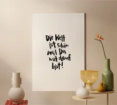 Ciao, sono Melanie Fisel - designer, mamma e amante dei refusi di Stoccarda. Il mio negozio è sinonimo di parole chiare, design minimalista e una buona dose di umorismo. Mi piace la semplicità, ma non la noia. E bello, ma con un certo atteggiamento. Disegno stampe per chi ama la propria casa ma non ha bisogno della saggezza del calendario. Per tutti coloro che sorridono brevemente a un bel detto, annuiscono e poi lo appendono subito al muro. I miei disegni celebrano la vita reale tra caos ed estetica - onesta, imperfetta e con stile. Tipografia che colpisce nel segno. Per pareti con personalità.