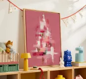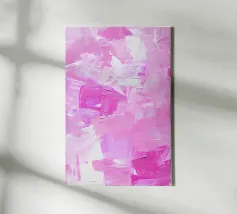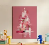 Albero di Natale astratto rosa da parete. Moderna stampa natalizia con morbida texture pittorica e toni invernali femminili.