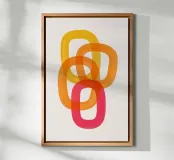 Questo poster d'arte moderna mostra forme intrecciate e trasparenti nei toni accesi del rosso, dell'arancione e del giallo. I colori caldi creano leggerezza e movimento e ricordano la luce del sole, il calore e l'energia. Ideale per interni minimalisti, spazi abitativi moderni o studi creativi: un richiamo armonioso per qualsiasi parete.