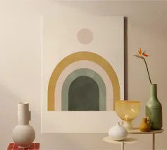 Scopri “Sun and Arch” di Gaite, un'opera d'arte affascinante che trasforma qualsiasi ambiente. Questo design moderno unisce forme geometriche con tonalità calde e accoglienti, creando un'atmosfera armoniosa e invitante. Perfetto per la tua casa, è ideale per il soggiorno, la camera da letto o lo studio, portando con sé un tocco di eleganza minimalista. Realizzato su tela di alta qualità, è pronto per essere appeso e goduto subito. Aggiungi un tocco di stile contemporaneo al tuo spazio con questa splendida opera!