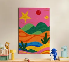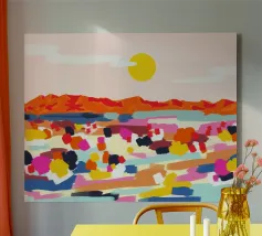 Canvas decorativo con design astratto e colori vivaci, ideale per soggiorno e ufficio. Realizzato con materiali di alta qualità e stampa resistente nel tempo, perfetto per aggiungere un tocco artistico e moderno agli ambienti. Prodotto senza opzione di personalizzazione, adatto come regalo per amanti dell'arte e dell'interior design contemporaneo.