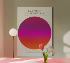 Scoprite il "fascino del crepuscolo" con il nostro poster moderno della serie PALETTE OF THE SETTING SUN. I cerchi cromatici aggiungono un tocco contemporaneo a queste immagini radiose e colorate.