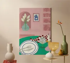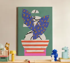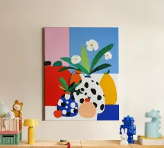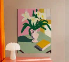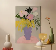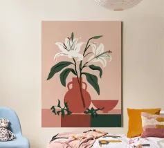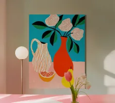 Scopri “Ssl 2” di Frauke Schyroki, una stampa su tela che combina eleganza e freschezza. Perfetta per dare un tocco di stile al tuo salotto o alla camera da letto, questa opera d'arte è ideale per chi ama i fiori e le tonalità vivaci. L'illustrazione elegante, con fiori bianchi e un vaso stilizzato, rende ogni ambiente unico e accogliente. Aggiungi un po' di personalità alle tue pareti e sorprendi i tuoi amici! Ideale anche come regalo originale per chi ama l'arte moderna e il design distintivo.