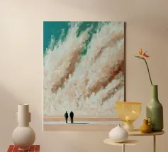 Uno studio meditativo sulla luce morbida e sul movimento astratto, Sunset Gradient evoca il dolce dissolversi del giorno nella notte. Con le sue tonalità luminose di pesca, oro rosa e arancione tenue, questa composizione minimalista fonde atmosfera ed emozione in un pezzo tranquillo. Perfetta per gli interni moderni che desiderano calma e calore.