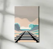 Questo suggestivo concetto visivo trasforma la ferrovia di Sylt in una suggestiva espressione artistica. I binari del treno si estendono verso il mare e sembrano fondersi con le onde, simboleggiando il delicato equilibrio dell'isola tra terra e acqua. La prospettiva surreale invita gli spettatori a contemplare la connessione tra il movimento, il tempo e la forza della natura. L'opera è caratterizzata da armoniosi blu pastello, beige sabbiosi e tonalità marine profonde, che esaltano la qualità onirica della scena. L'opera incarna lo spirito isolano del viaggio, della trasformazione e della danza della struttura contro la fluidità della natura.