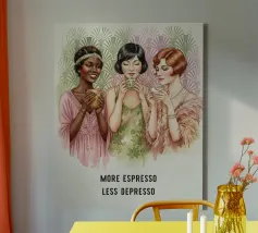 Scopri l'eleganza della stampa su tela "Tre Grazie" di Candid Chroma, perfetta per donare un tocco di arte moderna al tuo spazio. Questa illustrazione unica celebra la convivialità con un design originale e raffinato, ideale per la tua casa o l'ufficio.