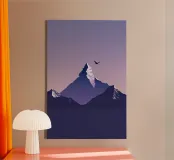 Questa interpretazione minimalista del K2 ne cattura l'imponente maestosità sotto un morbido cielo pastello. Un singolo uccello si libra in volo, aggiungendo un tocco di vita e libertà all'ambiente sereno e incontaminato. Le cime spigolose sono rappresentate con sottili sfumature, che esaltano l'imponenza della montagna e il suo fascino senza tempo. La composizione semplicistica ma audace evoca sentimenti di solitudine e armonia con la natura, rendendo questo pezzo un simbolo perfetto di avventura tranquilla e di esplorazione senza confini.