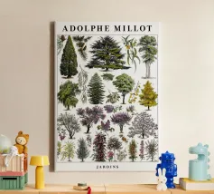 A timeless vintage illustration by Adolphe Millot featuring diverse trees in stunning detail. This botanical artwork blends scientific precision with artistic elegance, making it perfect for nature lovers, classic interiors, or educational spaces. A beautiful piece of natural history art to bring organic charm and sophistication to any wall.