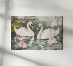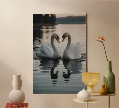Porta eleganza nella tua camera da letto con questa stampa canvas di cigni. Il design artistico e gli splendidi colori donano un tocco di serenità a ogni ambiente. Perfetto per gli amanti della natura e della decorazione minimalista.