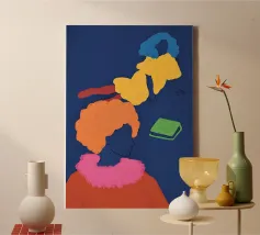 Canvas con design moderno "Two" di tainah negreiros, perfetto per arredare il soggiorno con stile contemporaneo. I colori vivaci e l'illustrazione astratta aggiungono un tocco emotivo e artistico alla parete, ideale come regalo d'arte moderna.