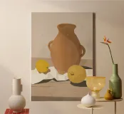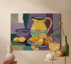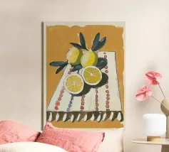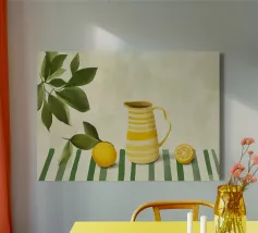 Aggiungi un tocco fresco e moderno alla tua cucina con questa stampa su tela 'Due Limoni' di LeaDArt. Perfetta per gli amanti della frutta e dello stile minimalista, questa opera d'arte cattura la serenità di un momento semplice, ideale per ogni ambiente.
