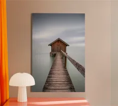 Scopri l'arte del minimalismo con “Vecchio Study 21”, un'opera che porta serenità e tranquillità nella tua casa. Questa stampa su canvas da 20 x 20 cm cattura una scena essenziale, un rifugio solitario su un molo, avvolto da una nebbia suggestiva. Perfetta per chi cerca un tocco di eleganza e calma, questo pezzo di design si adatta a qualsiasi ambiente: dal soggiorno alla camera da letto, fino all'ufficio. Scegliendo questa stampa, arricchisci il tuo spazio con un elemento di bellezza senza tempo, ideale sia per la tua casa che come regalo speciale. Gusta il silenzio evocato da quest'immagine, perfetta per un atmosfera di relax e riflessione in ogni stanza.