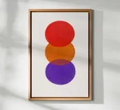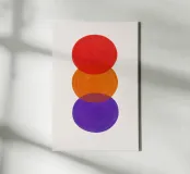 Tre cerchi, tre colori, un equilibrio tranquillo: questo poster moderno mostra una composizione verticale di aree di colore sovrapposte e trasparenti nei colori rosso, arancione e viola. Le delicate sovrapposizioni creano profondità e armonia: ideale per interni moderni, spazi di lavoro creativi o pareti artistiche minimaliste con un accento di colore.