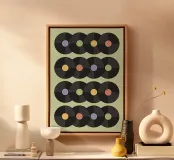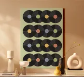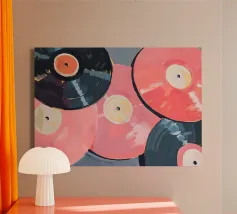 Questa opera d'arte combina arte e musica, utilizzando dischi d'epoca per creare una composizione di grande effetto. L'artista (kathrinmay) ha disposto con cura i dischi per creare una superficie dinamica che evoca la nostalgia. Perfetto per gli amanti della musica, per gli appassionati di vintage e per chi cerca un pezzo unico per la casa o l'ufficio.