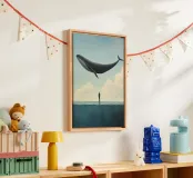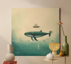 Questa immagine cattura l'imponente presenza di una balena e ci ricorda l'infinita profondità e il mistero dell'oceano. Il gigante gentile irradia una calma speciale che viene trasmessa all'osservatore e incoraggia la riflessione. Allo stesso tempo, simboleggia forza e costanza, il che conferisce all'immagine un potente simbolismo. La composizione di movimento e distesa crea un'atmosfera meditativa, calmante e ispiratrice. Questo dipinto non è solo un richiamo visivo, ma anche un invito a entrare in contatto con la bellezza e il significato del mondo marino.