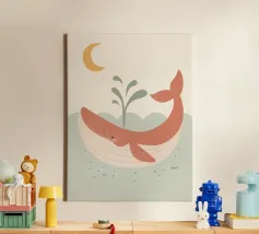 Aggiungi un tocco di originalità alla stanza dei più piccoli con questa stampa su canvas 'Wal', caratterizzata da un adorabile design di balena. Perfetta per creare un'atmosfera giocosa e accogliente.