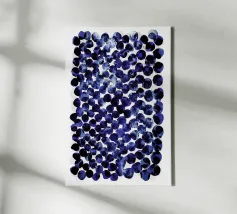 Questa opera d'arte acquerellata blu con motivo Waterdrop è un pezzo di grande impatto visivo. L'opera d'arte presenta un motivo ripetuto di gocce d'acqua rese in acquerello. Questa opera d'arte è perfetta per chi apprezza l'arte dell'acquerello e i motivi a goccia.