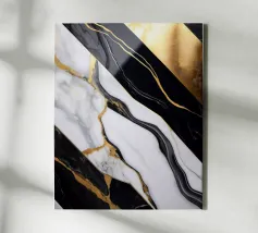 Canvas moderno Waves 06 con design astratto ondeggianti in bianco, nero e dettagli dorati. Perfetto per arredare soggiorni o uffici con uno stile contemporaneo e sofisticato. Realizzato con materiali di alta qualità, resistente e con stampa a lunga durata conformi agli standard europei.
