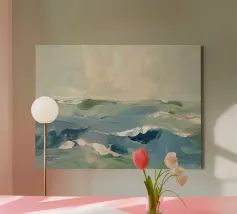 Questo paesaggio marino astratto cattura il movimento, la profondità e l'atmosfera dell'oceano in una forma moderna e senza tempo. Le strutture fluide e i colori sfumati ricordano l'acqua, il vento e la luce in continuo mutamento e trasmettono calma, vastità, nostalgia e libertà. L'immagine minimalista del mare crea un'atmosfera meditativa e si integra armoniosamente in spazi abitativi moderni, interni scandinavi o arredi minimalisti. Ideale per tutti coloro che amano l'arte astratta, i motivi marittimi e l'arte murale senza tempo.