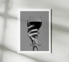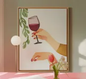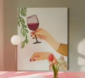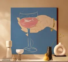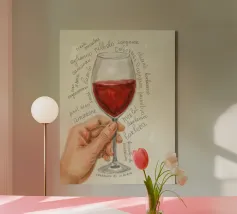 Bicchiere da vino dipinto con una mano. Generato con AI (Canva).