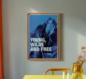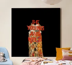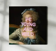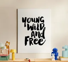 Canvas artistico in stile vintage con immagine iconica e scritta "Young, Wilde and Free". Ideale per decorare soggiorni o uffici con un tocco di personalità e stile retrò. Realizzato con materiali di alta qualità, resistente e di lunga durata.