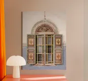Windows and screens. Blue tiles and decorated Moroccan architecture. Street photography in Morocco.