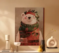 Illustrazione di un orso ronzante. Questo disegno dona un tocco accogliente e stravagante di magia invernale, perfetto per aggiungere un tocco di fascino e calore a qualsiasi parte della vostra vita.