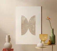 Quest'opera d'arte è una meditazione visiva sull'antica filosofia dello Yin e dello Yang, due energie complementari che sono interconnesse e interdipendenti. La composizione esprime questo principio attraverso due forme distinte ma collegate. La forma definita e stabile rappresenta lo Yang, l'energia maschile, attiva e fondante. La sua controparte morbida e fluida incarna lo Yin, l'energia femminile, ricettiva e creativa. L'unica tavolozza di colori tenui, che ricorda la terra sbiancata dal sole, mostra che non si tratta di forze opposte, ma di due aspetti essenziali di un unico, armonioso insieme.