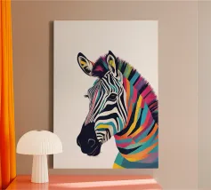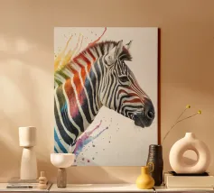 Una zebra creativa con strisce colorate nei colori dell'arcobaleno - un design giocoso pieno di gioia di vivere e di individualità.Zebra con strisce arcobaleno uniche come motivo principale. Armoniosa composizione di colori con un'espressione amichevole. Simbolo di diversità, creatività e orgoglio. Ideale per disegni infantili, moderni o legati alla cultura pop. Un vero e proprio eye-catcher dall'aspetto allegro.