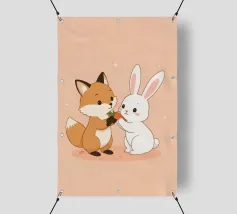 La volpe Voxy abbraccia dolcemente il suo piccolo amico di neve sotto il sole invernale. Colori tenui, impronte giocose e un'accogliente scena innevata rendono quest'opera d'arte perfetta per le camerette dei bambini, le nursery e gli amanti dell'arredamento invernale. Un'illustrazione che fa sciogliere il cuore, piena di amicizia e calore.