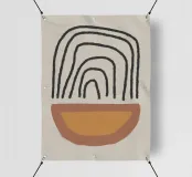 Quadro astratto moderno con forme organiche nei toni caldi del marrone e dell'arancione e linee nere. Opera d'arte minimalista con pennellate nere su sfondo beige. Per gli stili di vita e gli interni bohémien, moderno, essenziale, industriale e scandinavo. Ideale per la camera dei bambini, la camera da letto, il soggiorno o l'ufficio.