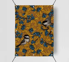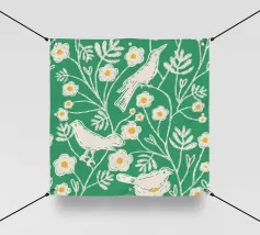 Il design unico presenta una vite rigogliosa con uccelli appollaiati tra le foglie.