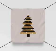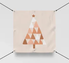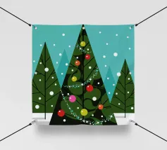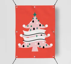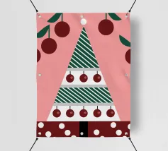 Illustrazione a tema natalizio, realizzata con amore. Albero di Natale con stella e decorazioni in un design piatto con effetto di stratificazione. Perfetto per un'atmosfera natalizia elegante.