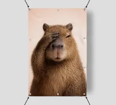 Una simpatica illustrazione di capibara circondata da un testo motivazionale. Le parole incoraggiano l'individualità con un tocco umoristico, evidenziando il fascino dei capibara.