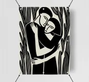 Questa imponente opera celebra il legame umano attraverso la radicale riduzione al bianco e nero. Lo stile si ispira inequivocabilmente all'espressionismo xilografico dei primi del Novecento, di artisti come Ernst Barlach e Käthe Kollwitz, pur possedendo l'eleganza grafica dell'epoca Art Déco. Le linee chiare e le forme chiuse e contrastanti creano un'impressione scultorea e concentrano tutta l'energia emotiva sull'abbraccio centrale. La composizione irradia una profonda malinconia e una calma senza tempo.
