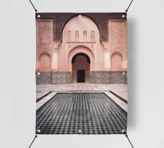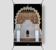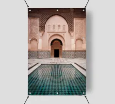 Antico edificio di Fez. Architettura tradizionale marocchina. Fotografia di strada in Marocco.